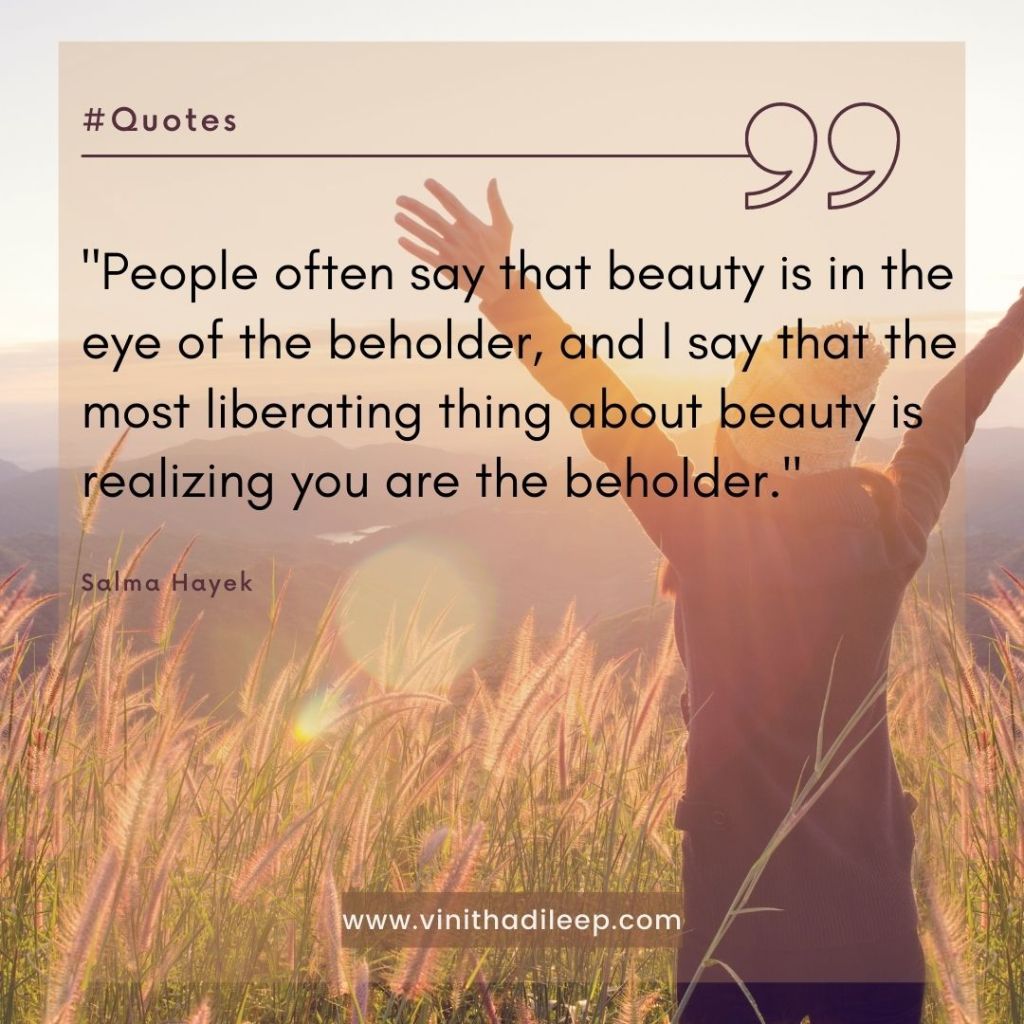“People often say that beauty is in the eye of the beholder, and I say that the most liberating thing about beauty is realizing you are the beholder.”