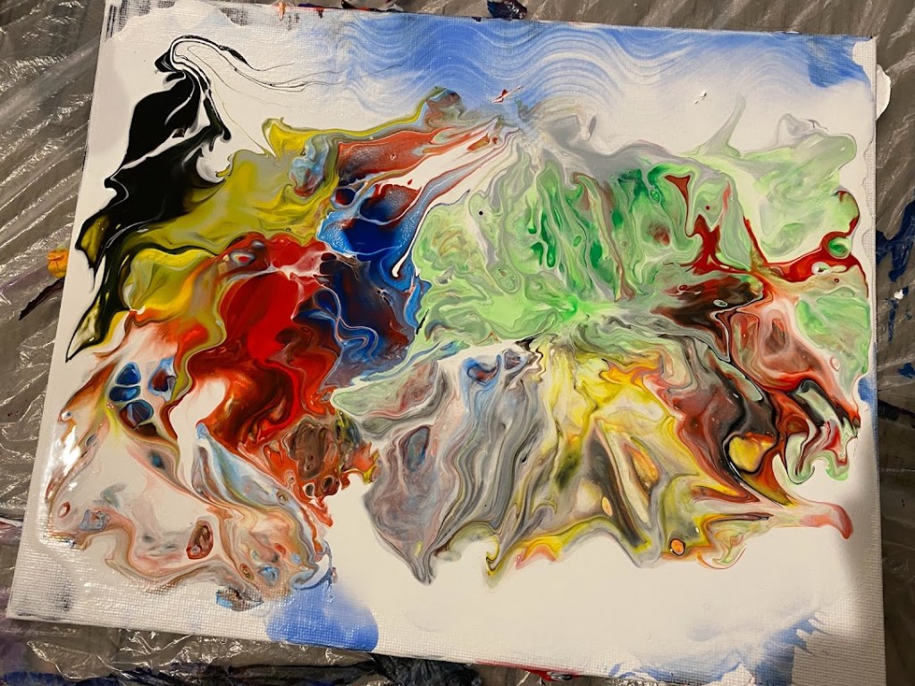 I used a straw to blow the paint here and there and it was a very satisfying feeling. I am trying out these new techniques found on YouTube. I am so grateful for getting in touch with the valuable resources and tutorials on YouTube.