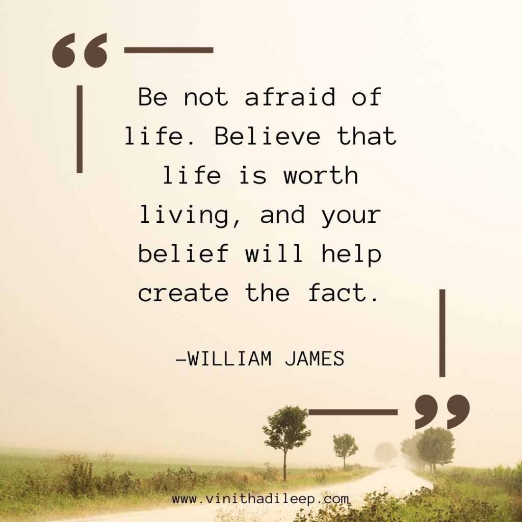 Be not afraid of life. Believe that life is worth living, and your belief will help create the fact.