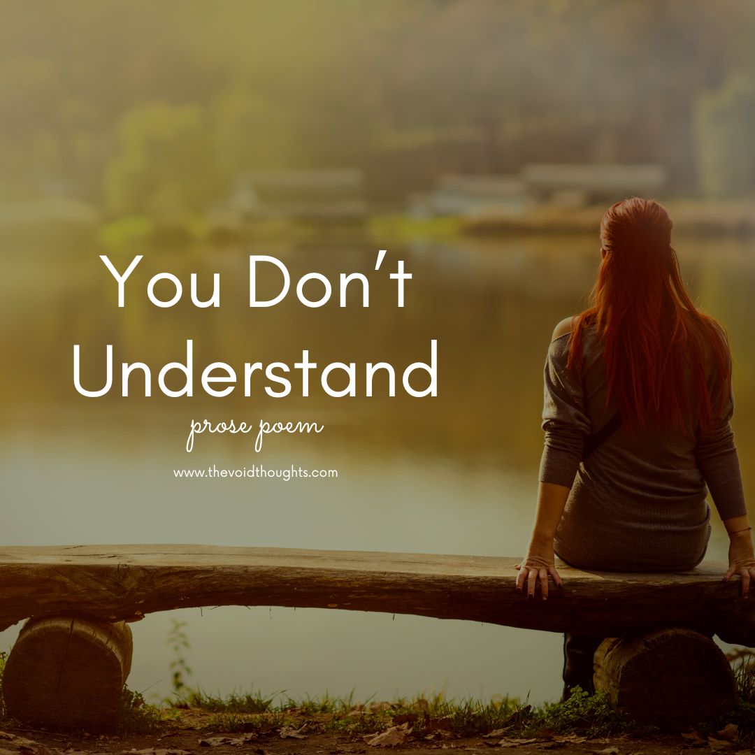 The distance between our worlds widened as he sought refuge in those three words. ‘You don’t understand’ was his refuge, after all.