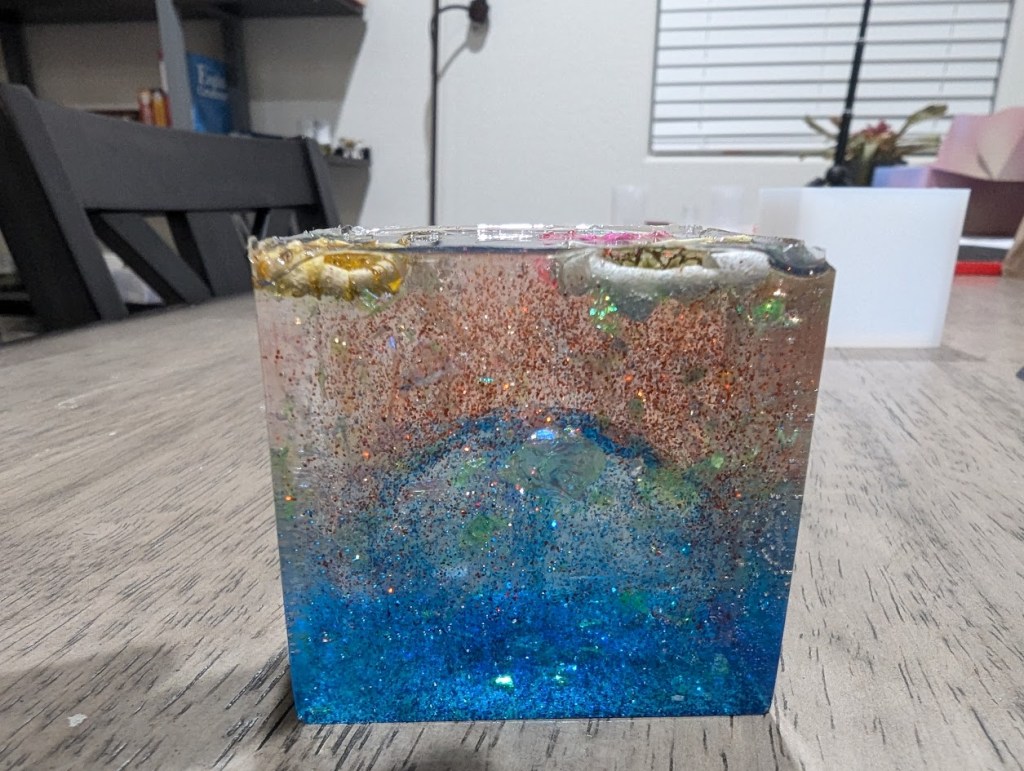 It was a bit messy and time-consuming, but worth the effort. I would’ve liked to make some smaller items, but the beginner kit I bought didn’t include any small molds. While I enjoyed the process, it felt too tedious for me, so I don’t plan to explore resin art further soon.