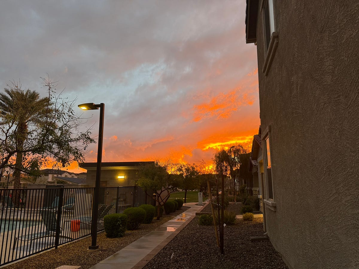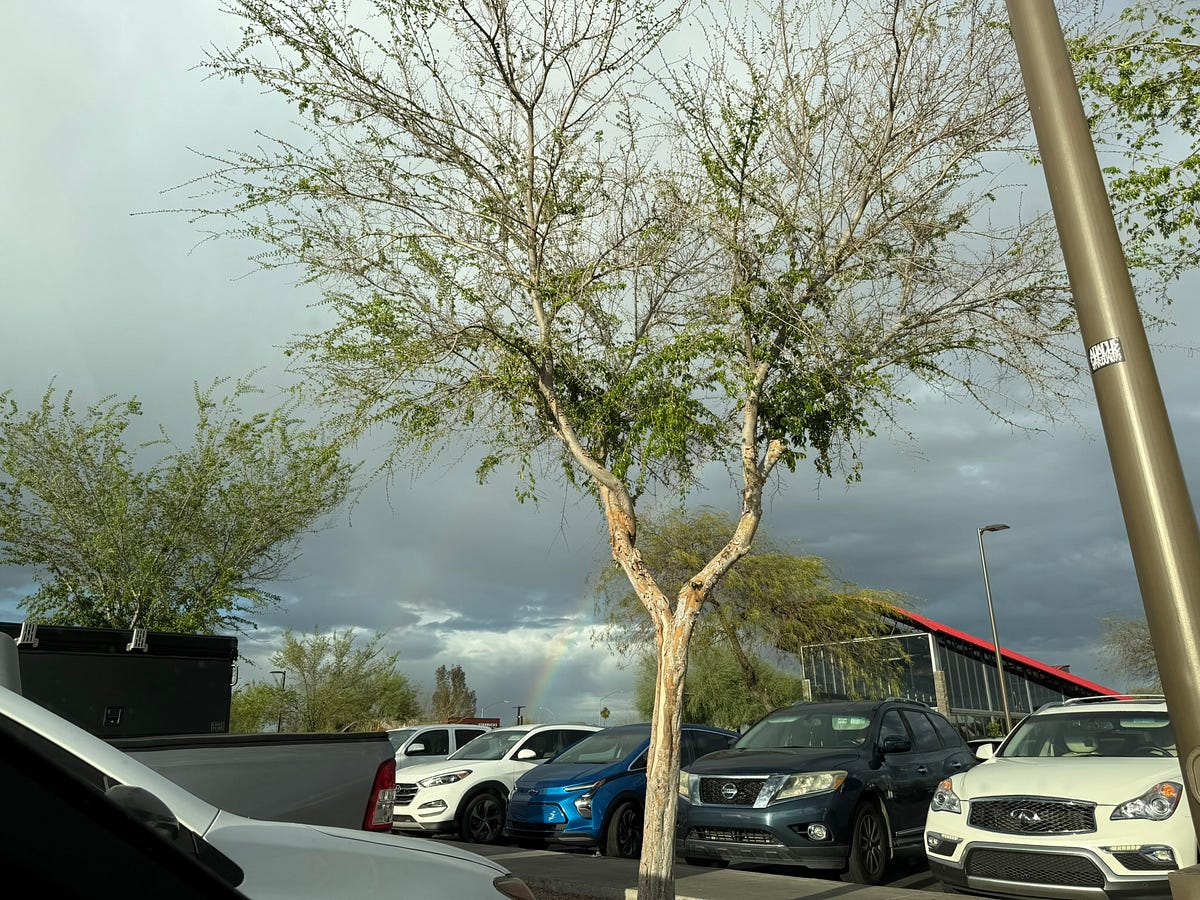 Loved that little piece of rainbow you caught on camera, and also the blazing orange sky. I love the rains, particularly when I don’t have to step outdoors. 🙂
